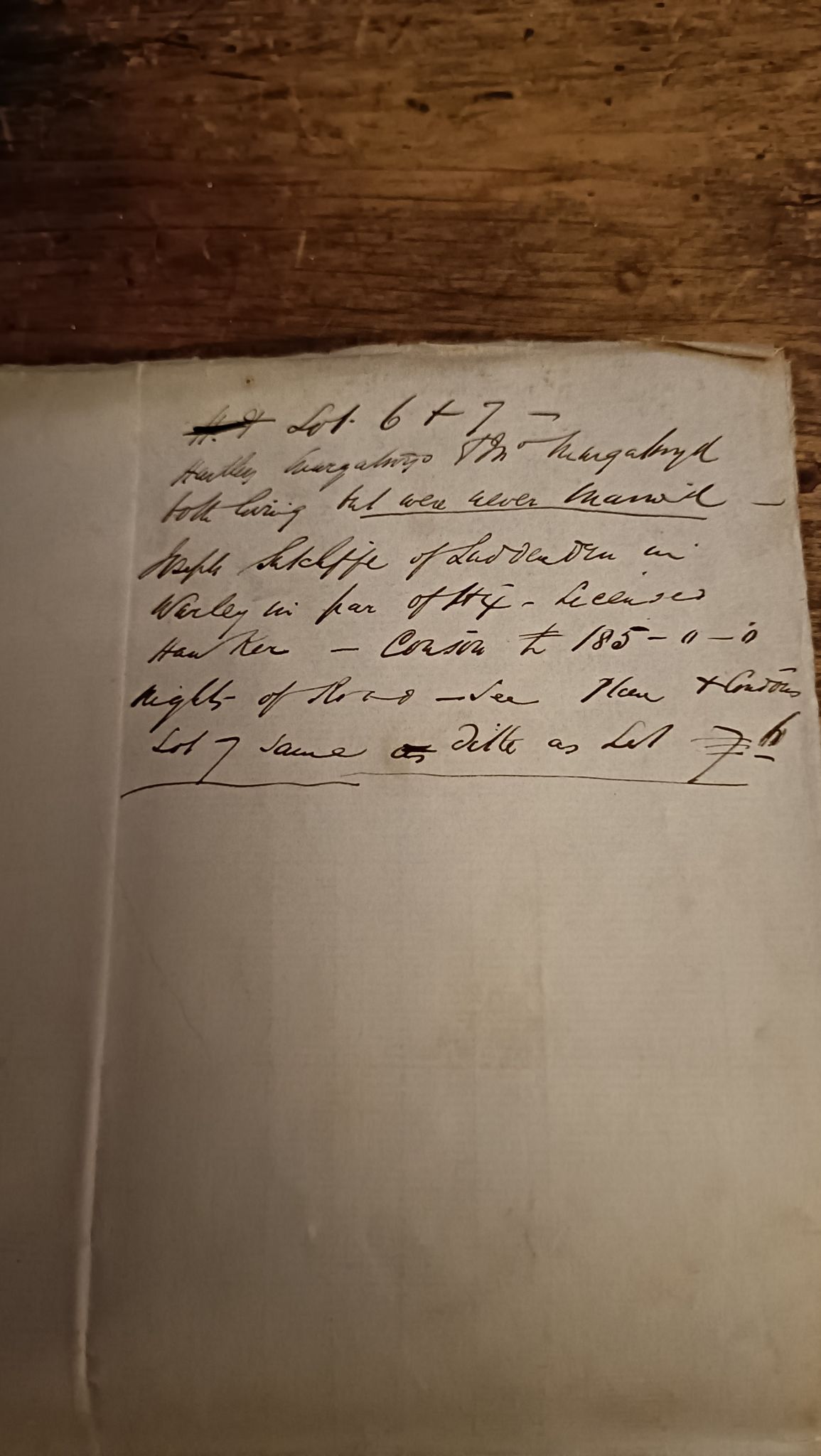 | current | 20:01, 8 October 2025 | 2,608 × 4,624 (2.98 MB) | WestHouseJohn (talk | contribs) | Cover page for the abstract of the title for lots 6 and 7 appearing in the auciton of various properties owned by the Murgatroyd. The auction took place in July 1854. |