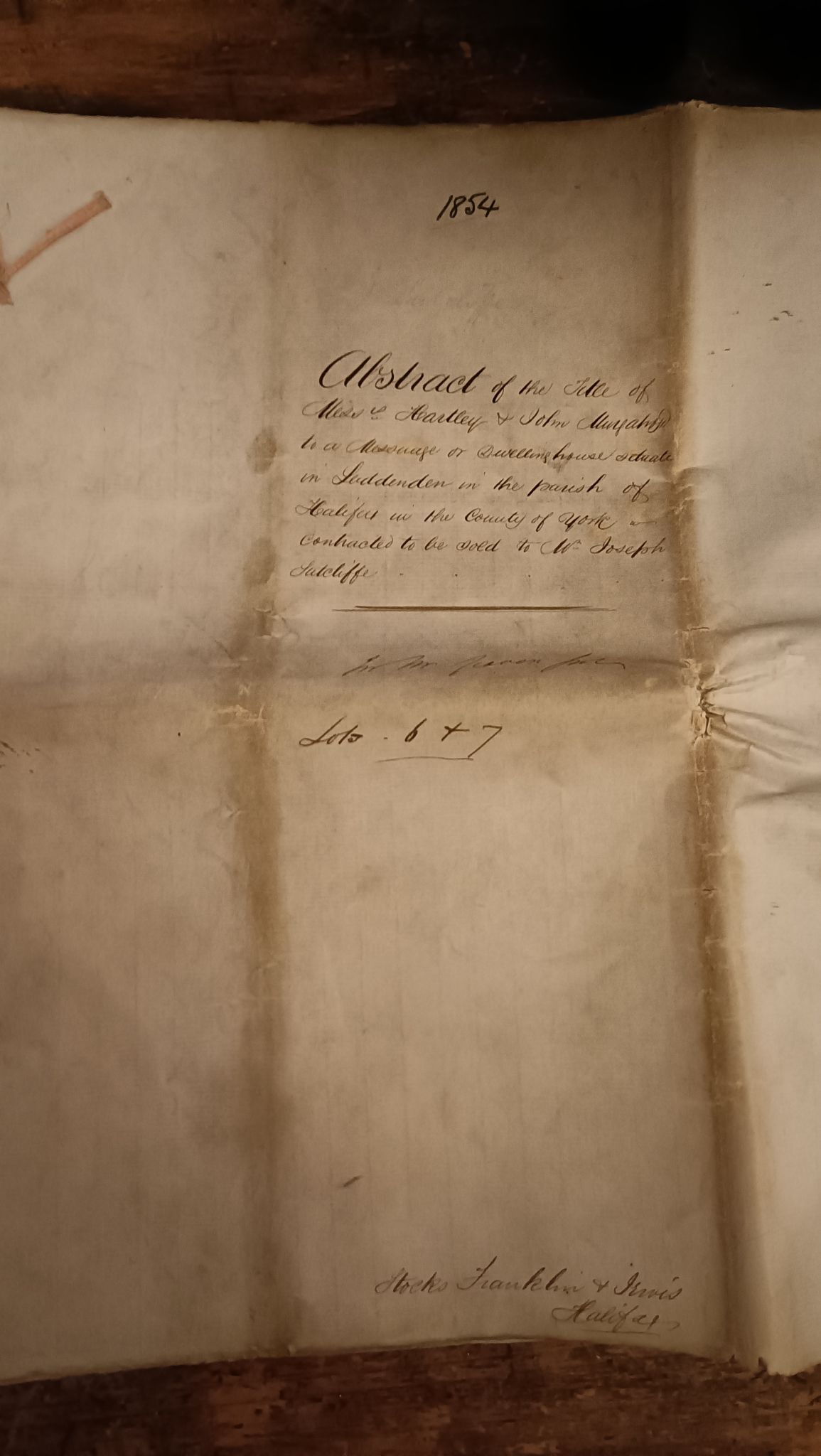 Further notes on the cover pages of the abstract of title for lots 6 and 7 of the 1854 auction.